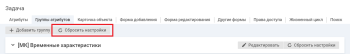 В карточке типа объектов на вкладке "Группы атрибутов" нажмите кнопку Сбросить настройки.