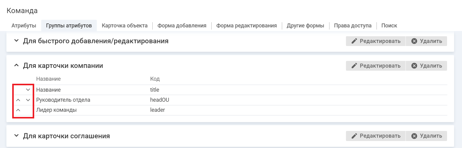 Чтобы изменить порядок расположения атрибутов в группе, выполните следующие действия:
