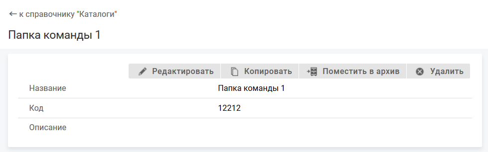 или в карточке папки каталога нажмите кнопку Поместить в архив.
