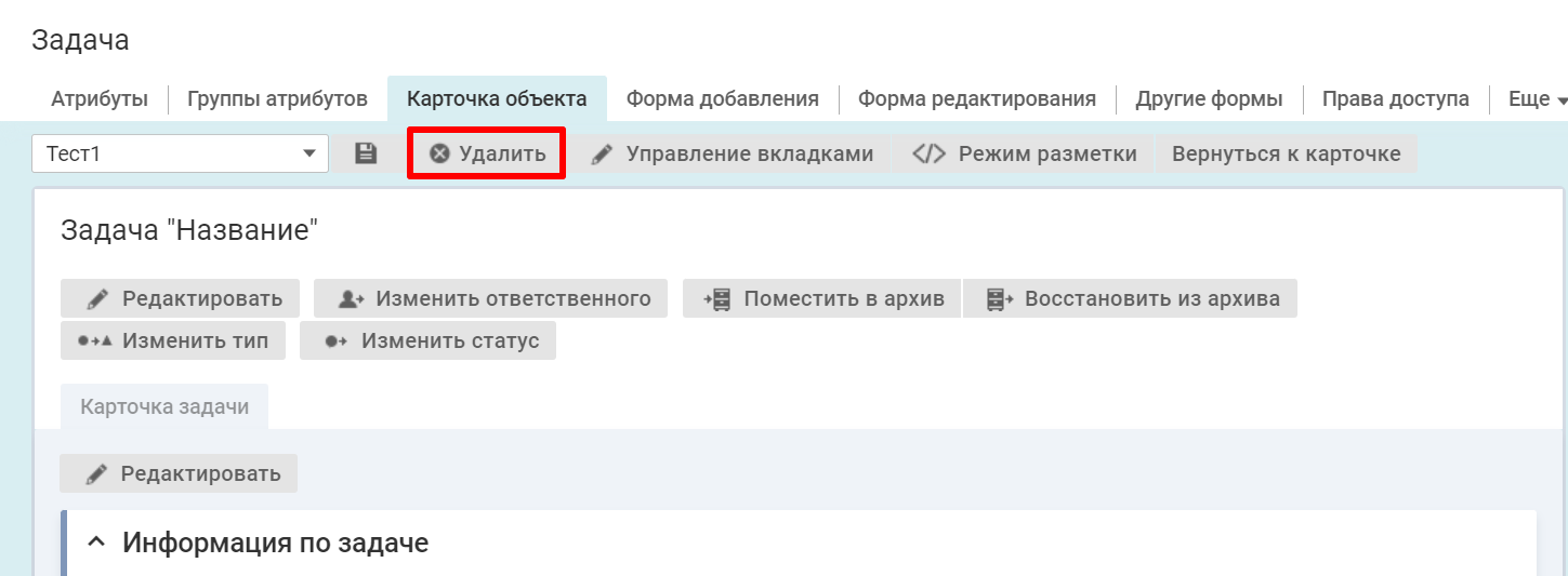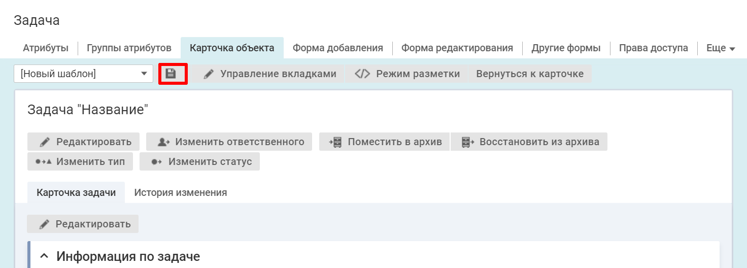 Действия с шаблонами карточки объекта