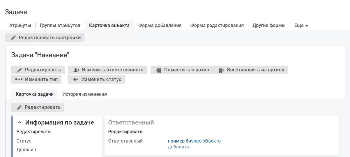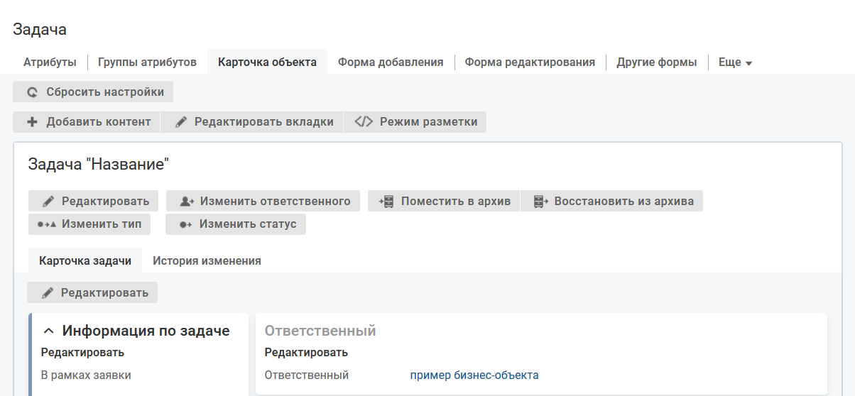 Интерфейс карточки объекта, настроенный в классе/типе,