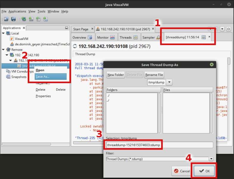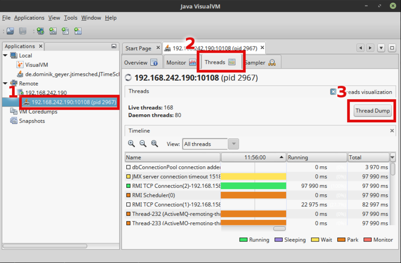 Удаленное снятие стеков потоков утилитой Java VisualVM