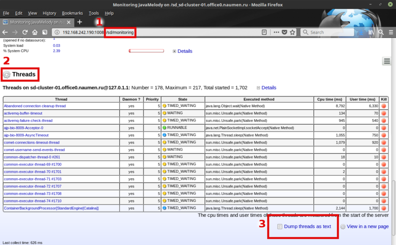 - В адресной строке вместо .../sd/operator наберите .../sd/monitoring. Откроется окно мониторинга JavaMelody.