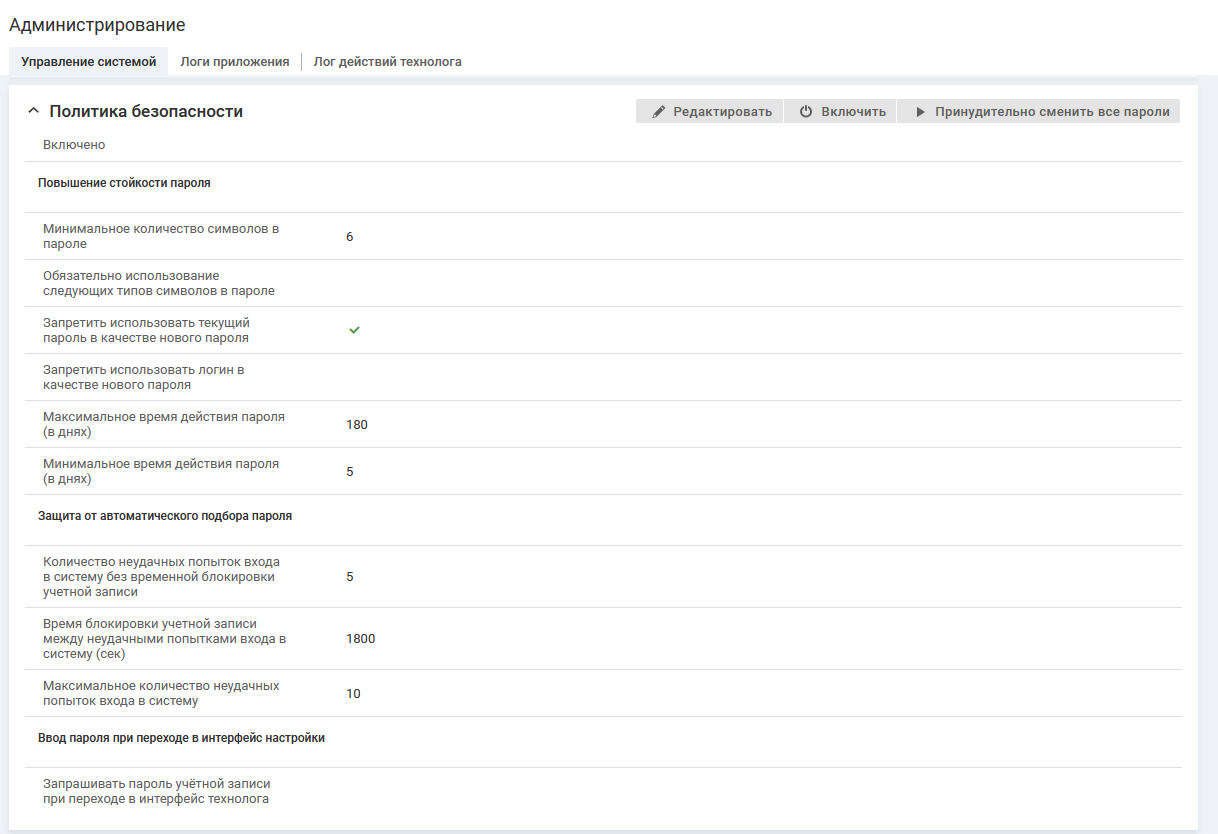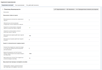 В блоке "Политика безопасности" нажмите кнопку Редактировать. На экране откроется форма "Редактирование настроек политики безопасности".