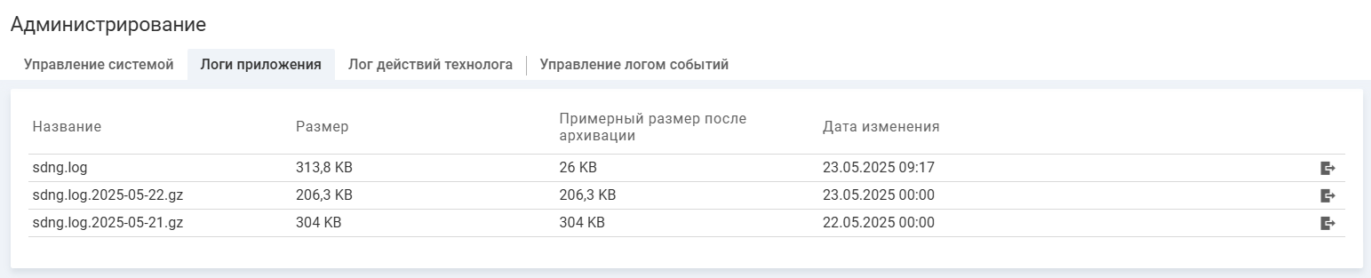 • Название файла в формате "sdng.log + .дата записи лога ГГГГ-ММ-ДД". Текущий лог приложения называется sdng.log.zip.