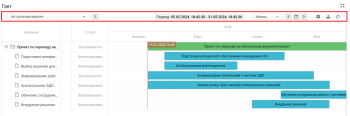Панель управления — панель в шапке диаграммы, которая содержит иконки и кнопки для настройки представления диаграммы (масштаба, фильтрации, группировки и т.д.), выполнения пользовательских действий.
