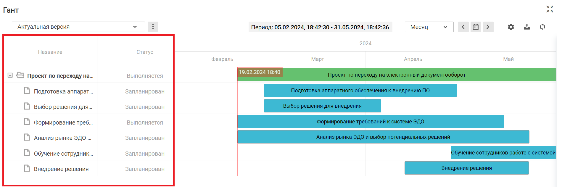 Диаграмма Ганта размещается на карточке объекта в контенте типа "Встроенное приложение".