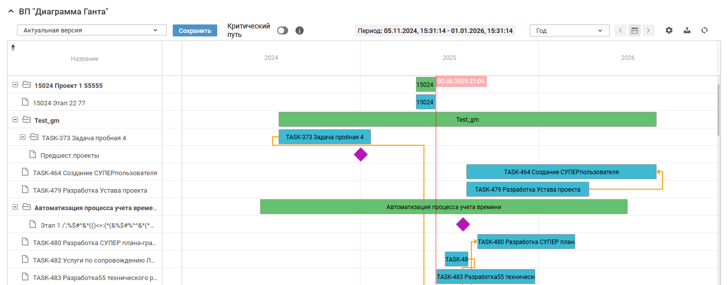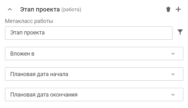 На диаграмме доступна фильтрация работ. Чтобы настроить фильтрацию, нажмите на иконку фильтрации, расположенную справа от поля работы, и задайте условия.