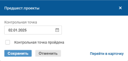 Чтобы изменить срок контрольной точки, дважды нажмите на соответствующую контрольную точку, на форме редактирования контрольной точки измените срок и нажмите Сохранить.