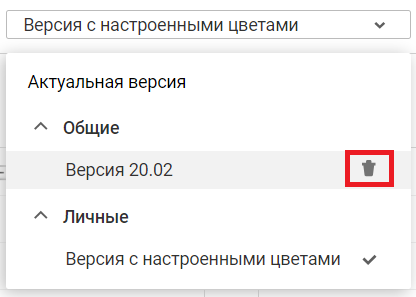 Наведите на значение версии и нажмите иконку удаления в строке версии. Версия будет удалена.