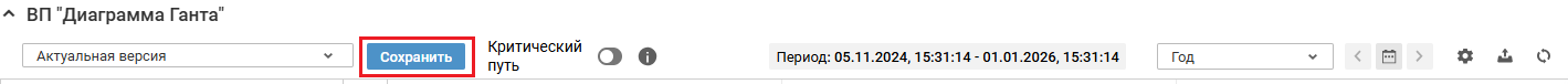 Сохранение актуальной версии доступно пользователям, включенным в группу пользователей с кодом "GanttMaster".