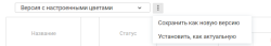 Нажмите на иконку рядом с полем выбора версии, выберите Установить как актуальную и подтвердите действие на форме. Текущая версия будет установлена в качестве актуальной.