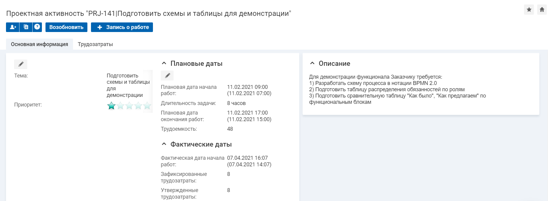 Чтобы отредактировать значение, нажмите на ячейку столбца в строке ресурса/работы, измените значение и нажмите клавишу Enter. Изменения будут сохранены в системе.