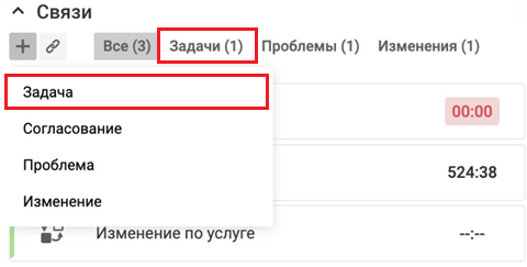 Доступен для связывания — наличие иконки добавления связи с объектом
