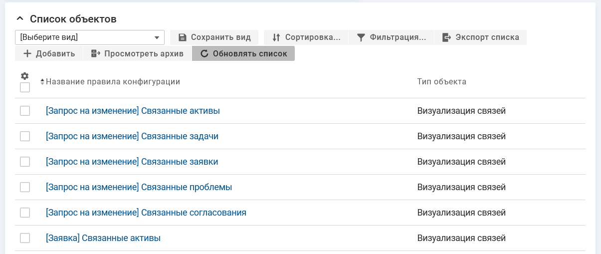 Правило конфигурации необходимо создать для каждого класса объектов, с объектами которого предоставляется возможность устанавливать связь в виджете приложения.