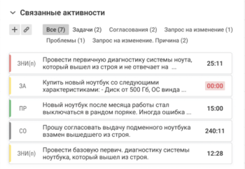 Если дата дедлайна является счетчиком времени, то в активном состоянии или приостановленном счетчик отображается черным цветом. Если закончился отсчет или наступило время дедлайна, то счетчик отображается красным цветом. Время отображается в формате чч:мм в астрономических часах, например, если дедлайн через 7 дней, то счетчик будет показывать 167:59(168). Счетчик обновляется в момент обновления списка и при открытии или обновлении страницы.