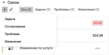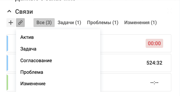 Связи с существующими объектами добавляются на карточке объекта в блоке с виджетом встроенного приложения "Мультиклассовый список связей".