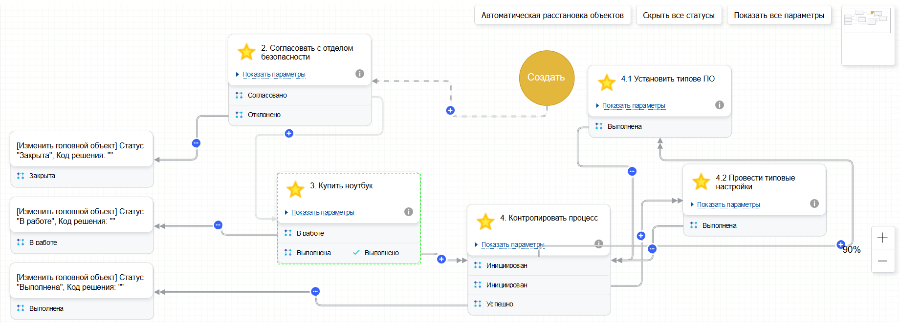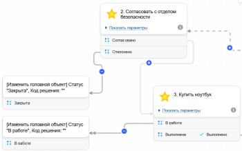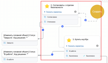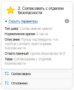 - в виде карточки — объекты с информацией о шаге маршрута бизнес-процесса (класс "Бизнес-процесс" / тип "Шаблон шага");
