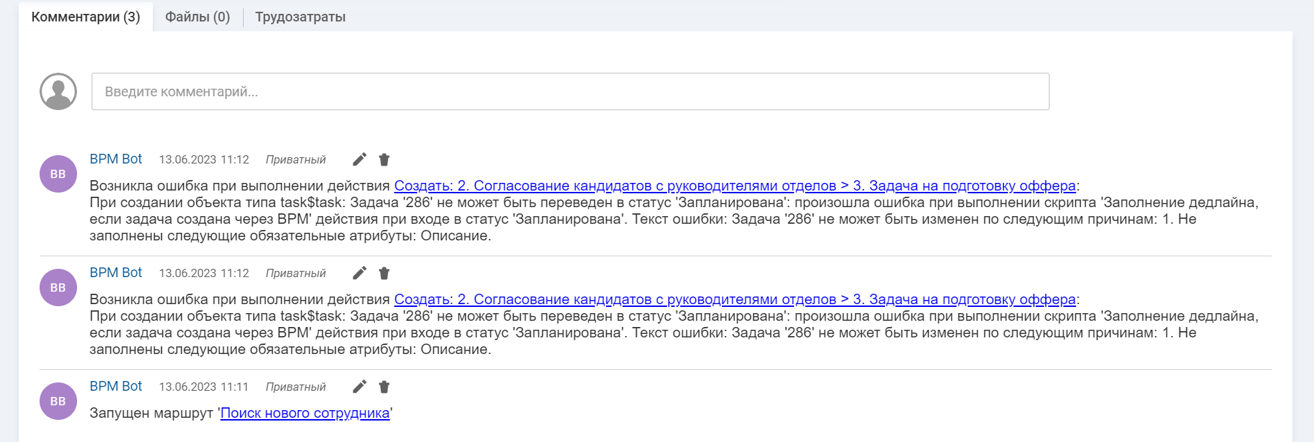 Бот добавляет приватные комментарии к объектам, по которым запускаются маршруты, в следующих случаях: