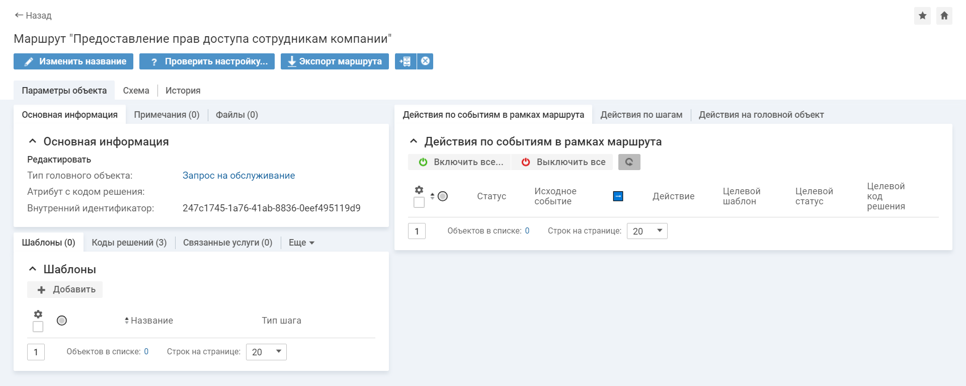 Добавление и настройка нового маршрута на примере заявки на предоставление прав доступа сотрудникам компании.