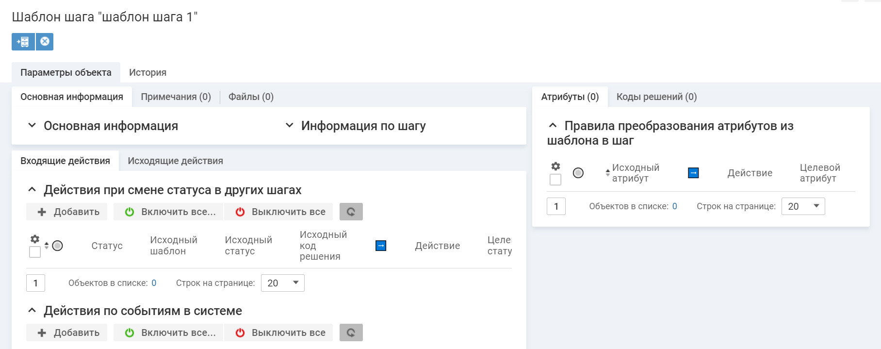 - Настроить — действие переходит в статус "Настройка", в котором можно изменять исходный и целевой объекты, добавлять действия с копированием атрибутов и т.д.