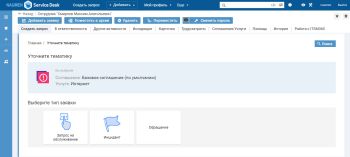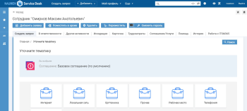 В разделе описывается создание запроса с помощью витрины услуг для стандартного Каталога услуг — пользователь выбирает сначала соглашение, затем услугу.