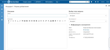 Поля "Соглашение /Услуга" и "Тип запроса" уже заполнены.