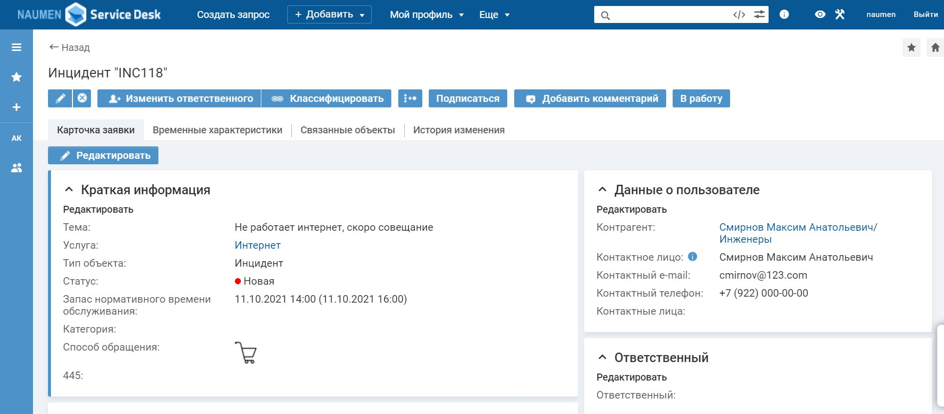 Создание запроса с помощью витрины услуг в веб-интерфейсе