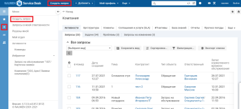 Нажмите кнопку для создания запроса в меню или на панели быстрого доступа.
