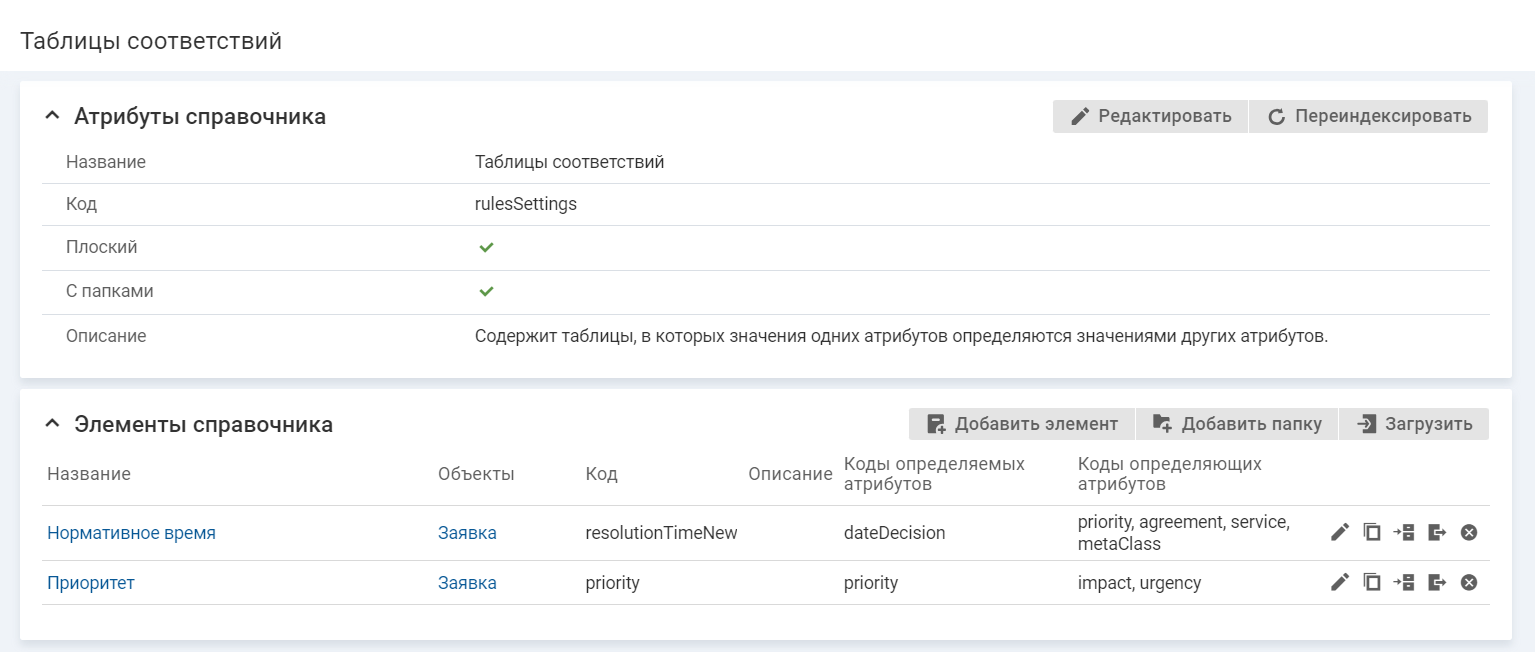 • Название — название таблицы соответствий. Название таблицы является ссылкой на карточку таблицы соответствий.