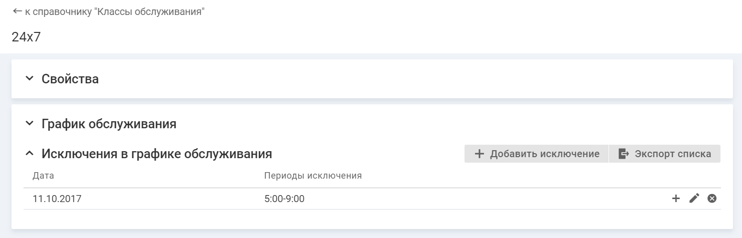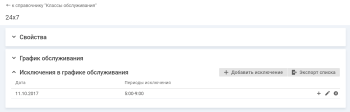 3. В блоке "Исключения в графике обслуживания" нажмите кнопку Экспорт списка.