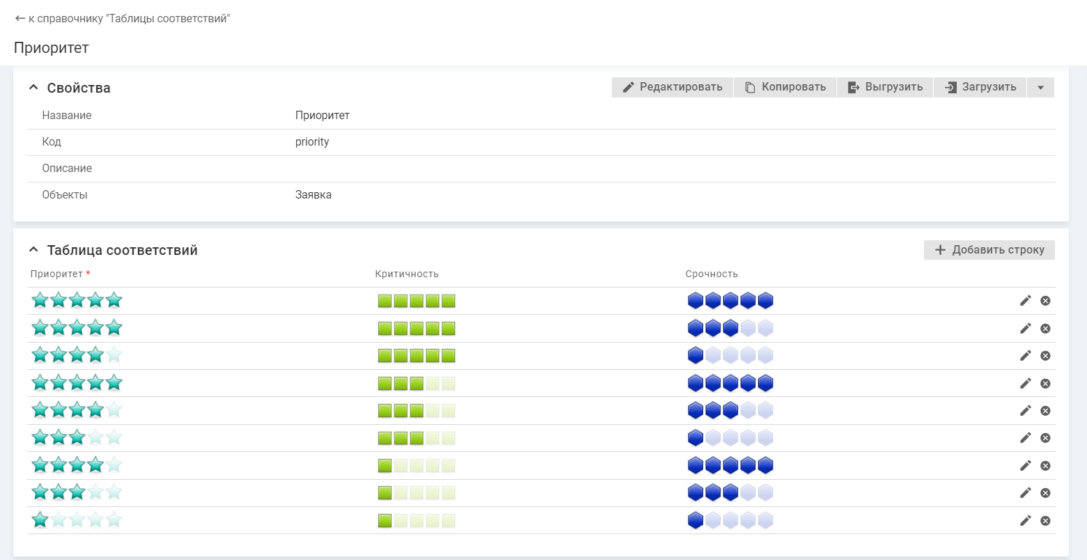 - Нажмите кнопку Добавить строку. На экране откроется форма редактирования таблицы соответствий.
