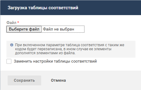 Чтобы выполнить загрузку таблицы соответствий, выполните следующие действия: