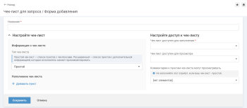 При добавлении чек-листа вручную пользователь самостоятельно настраивает наполнение чек-листа и доступ к нему.