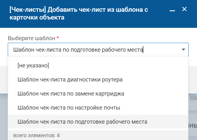 Добавление чек-листа из шаблона