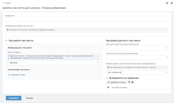 Откроется форма добавления шаблона чек-листа.