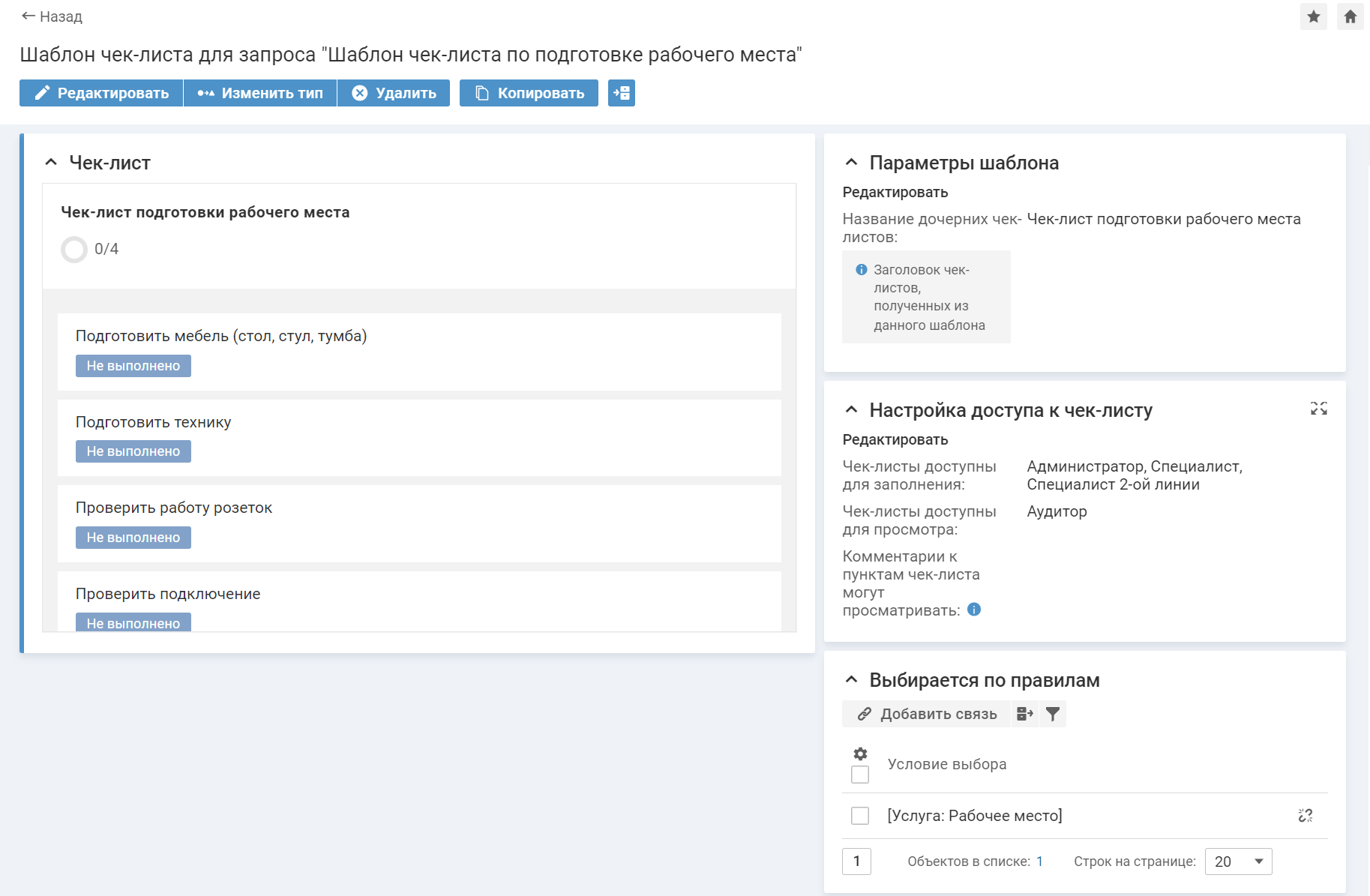 Настройка шаблонов чек-листов