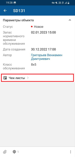 Экран с чек-листом открывается при нажатии на чек-лист в списке. Если к объекту добавлен один чек-лист, то на экране "Чек-листы" он отображается сразу.