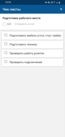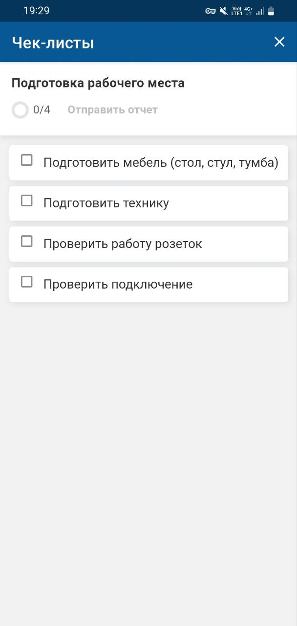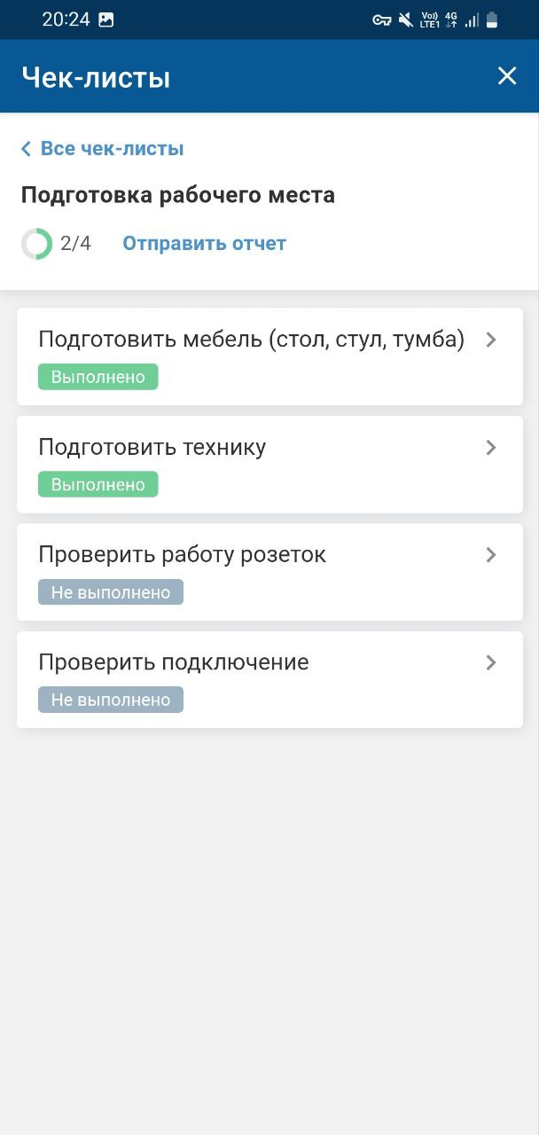 На первом экране отображается список пунктов со статусами "Выполнено"/"Не выполнено".