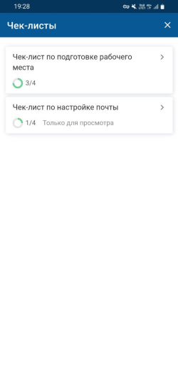 Список чек-листов отображается на экране "Чек-листы", если к объекту добавлено несколько чек-листов, доступных пользователю для заполнения или просмотра. Первыми в списке расположены доступные для заполнения.
