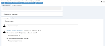 При успешном выполнении действия появится сообщение о добавлении комментария, комментарий с отчетом отобразится на карточке объекта в блоке "Комментарии" после обновления страницы.