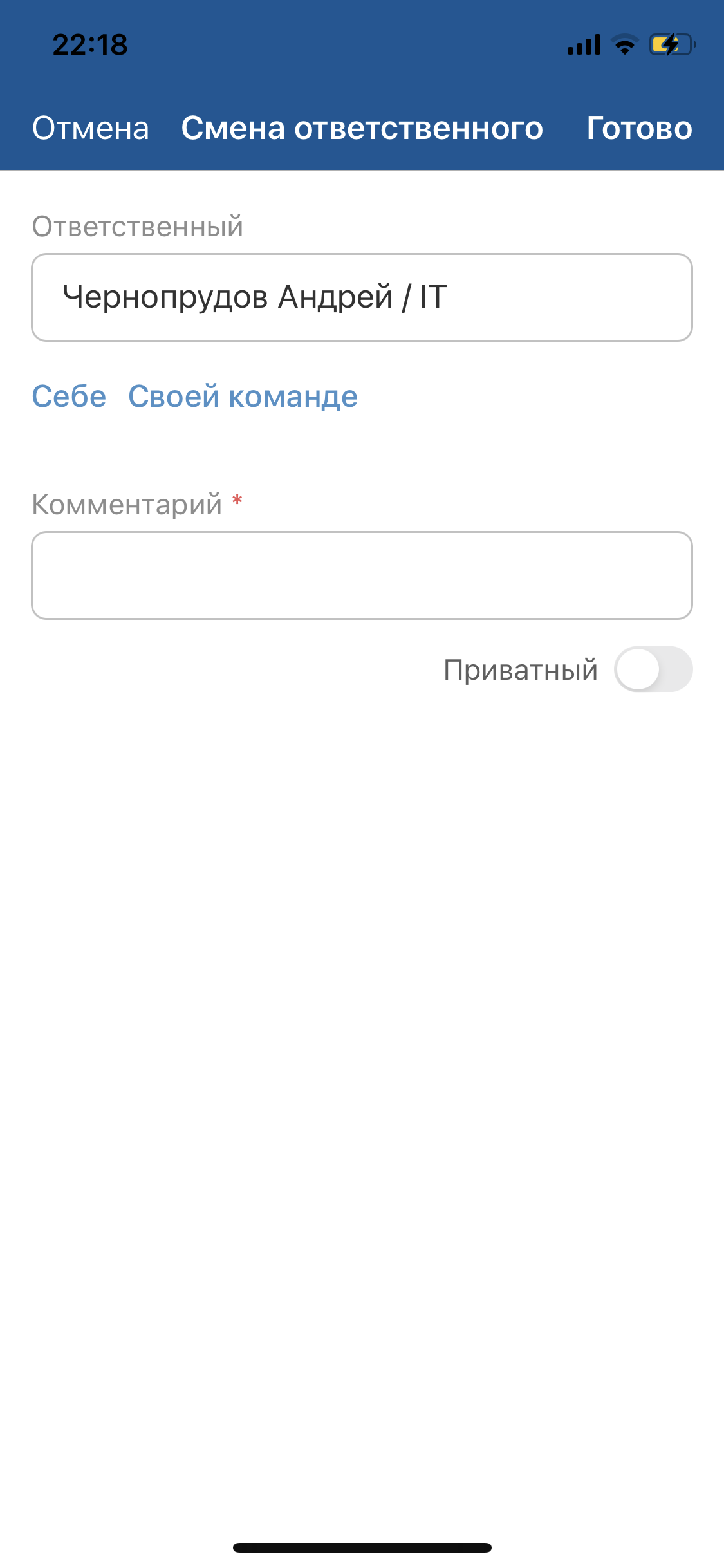 Сменить ответственного. iOS