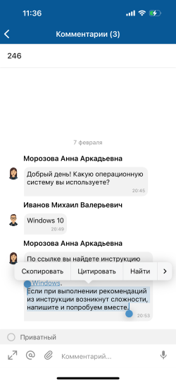 Цитирование комментария доступно в онлайн и офлайн-режиме.