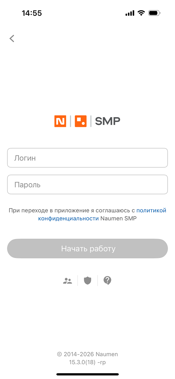 Меню мобильного приложения "Поддержка" → экран "Поддержка".