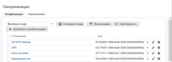 Чтобы открыть список конфигураций, в меню навигации выберите "Настройка системы" → "Синхронизация". На экране отобразится вкладка "Конфигурации". Список конфигураций отсортирован по названию конфигурации в прямом лексикографическом порядке без учета регистра.