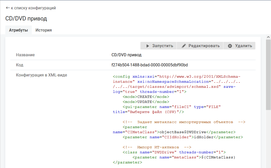 • Конфигурация в XML виде — содержание файла конфигурации импорта, см. Файл конфигурации импорта.
