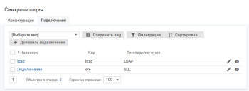 • Создание подключения к SQL в разделе "Настройка системы" → "Синхронизация" (вкладка "Подключения").