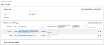 - "Расширенное редактирование связей для атрибутов" — отображаются атрибуты, в настройке которых используется данная структура.