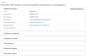 Повторная обработка — это обработка письма последней версией любого правила обработки почты по требованию пользователя.
