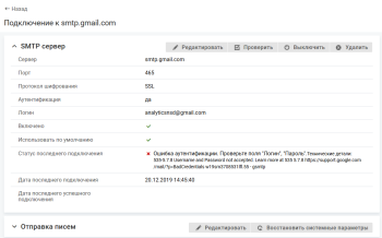 • Пара "логин /пароль" верна и аутентификация прошла успешно. Если флажок "Аутентификация SMTP" установлен.